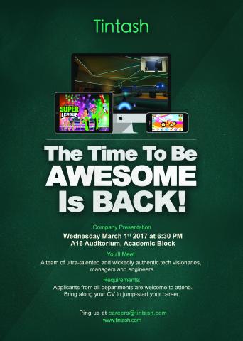 Tintash is coming to LUMS for an information session as per the following schedule:
